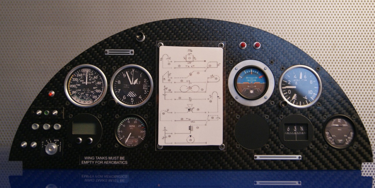 Cockpit Panel: Edge540 V3 37% 2,7m (CFK) Carbon Oberfläche incl. individuellen Pilotenschild und Kennung